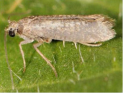 La Teigne de l'olivier (Prays oleae Bernard) : C’est un papillon dont les larves dévorent les organes floraux, les amandes des fruits et le parenchyme des feuilles. La teigne passe l'hiver sous forme de chenilles invisibles à l'œil nu, à l'intérieur des feuilles. Au printemps, peu avant la floraison, ces chenilles reprennent une vie active, se nourrissant quelques jours aux dépens du parenchyme, sortent et attaquent les bourgeons floraux et les jeunes pousses. Après s'être tissées un cocon, les chenilles se métamorphosent en papillons qui eux-mêmes, vont pondre sur les bouquets floraux non épanouis. Il en résulte une deuxième génération de chenilles qui dévorent les fleurs. La troisième génération s'attaque aux jeunes olives, pénètre dans le noyau, dévore l'amande et entraîne la chute des fruits en août- septembre.